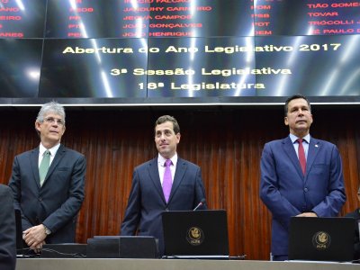 O presidente Gervásio Maia realizou nesta quinta-feira (2) a abertura os trabalhos do 2º biênio da 18ª legislatura da Assembleia Legislatura da Paraíba (ALPB). Durante a sessão, o parlamentar assegurou pautar sua gestão na modernização do Legislativo paraibano e na promoção da interação com os demais poderes. A solenidade contou também com a presença do governador da Paraíba Ricardo Coutinho e autoridades.