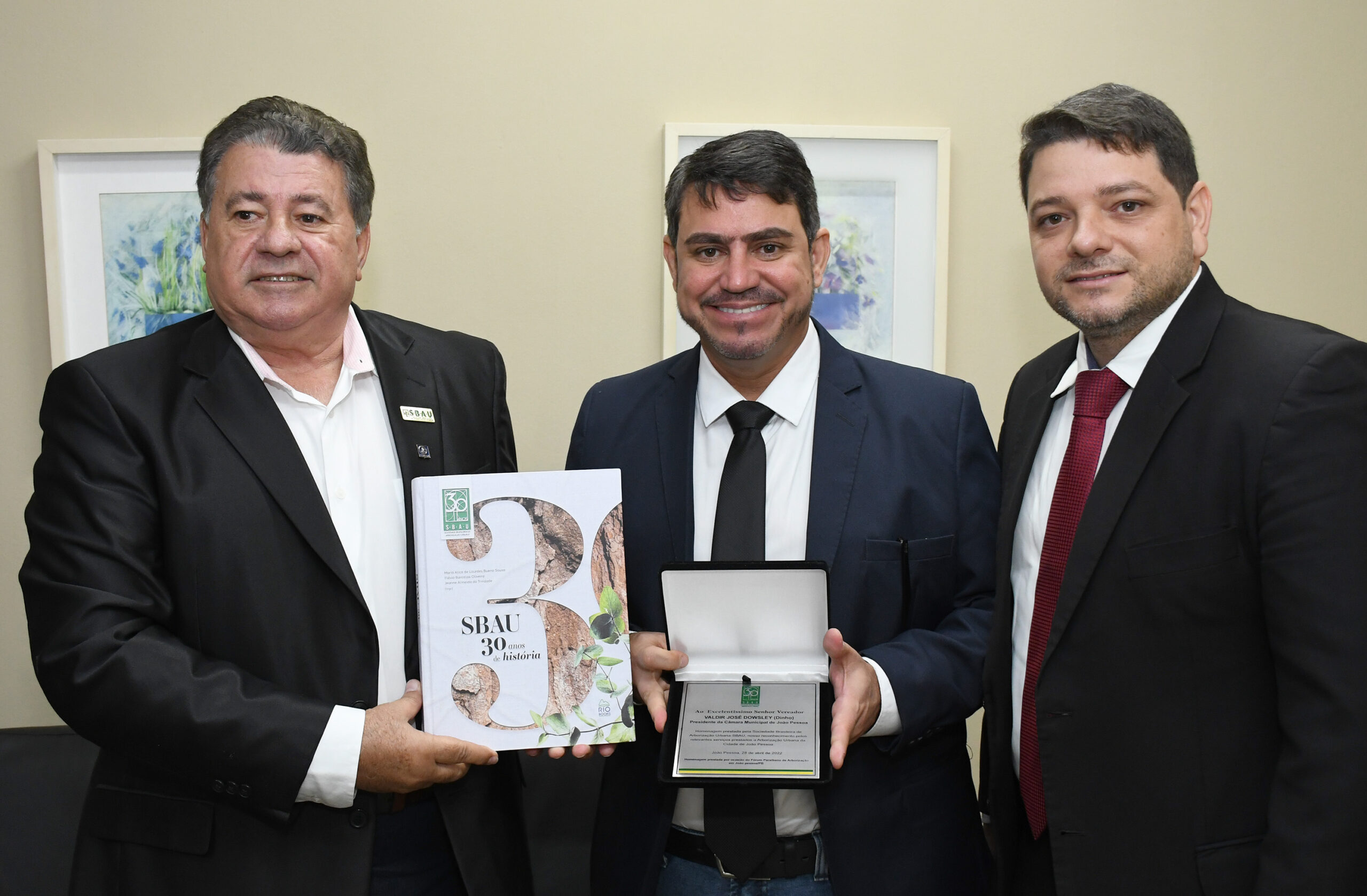 Na manhã desta terça-feira (18), o presidente da Câmara Municipal de João Pessoa (CMJP), Dinho Dowsley (Avante) recebeu do presidente da Sociedade Brasileira de Arborização Urbana (SBAU), o paraibano Sérgio Chaves, uma comenda de Honra ao Mérito e um livro que registra os 30 anos de atuação da entidade em defesa da ecologia nos centros urbanos.