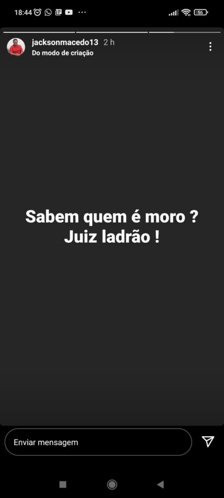 O presidente estadual do PT da Paraíba, Jacson Macêdo, aproveitou a visita do ex-juiz Sérgio Moro ao estado nesta semana e apontou toda a artilharia de suas redes sociais para o pré-candidato à Presidência da República pelo Podemos.