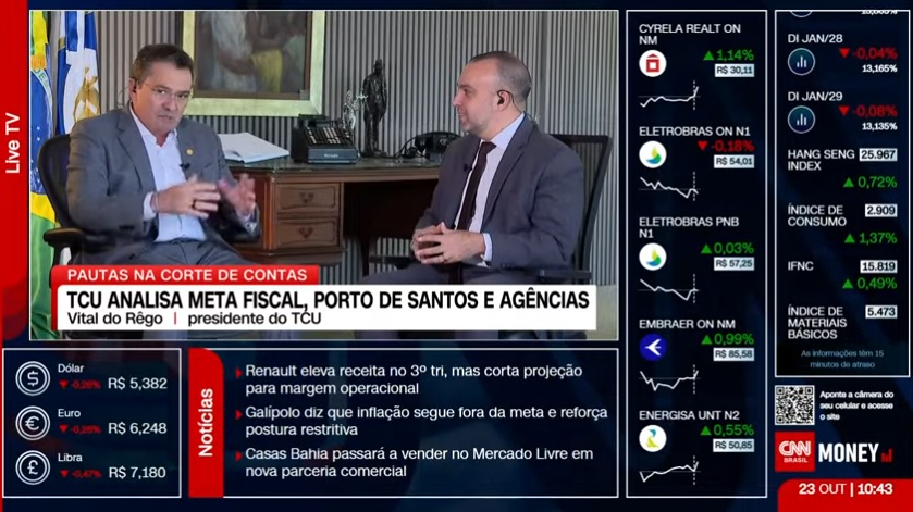 O presidente do TCU (Tribunal de Contas da União), o paraibano Vital do Rêgo, afirmou, ontem (23), em entrevista ao CNN Money, que a aprovação de novas leis ou marcos regulatórios que criem benefícios fiscais é ilegal caso o governo tenha encerrado o ano anterior com déficit nas contas públicas.
