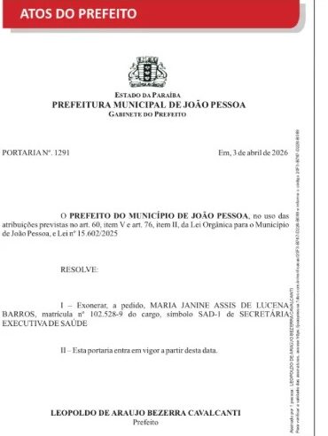 Em primeiro ato como prefeito de João Pessoa, Léo Bezerra (PSB) exonerou a filha do agora ex-prefeito Cícero Lucena, Maria Janine Assis de Lucena Barros. Ela ocupava o cargo de secretária executiva de Saúde de João Pessoa desde abril de 2022.