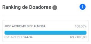 Os demais candidatos Cícero Lucena (PP), Marcelo Queiroga (PL), Yuri Ezequiel (UP) e Camilo Duarte (PCO) ainda não receberam doações.
