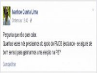 Mostrando que não poderia ficar calado com a situação, o primo de Cássio postou em seu perfil no Facebook a seguinte colocação: “Pergunta que não quer calar. Quantas vezes nós precisamos do apoio do PMDB para ganharmos uma eleição na Paraíba?”, alfinetou Ivanhoé Cunha Lima que foi um dos primeiros integrantes da