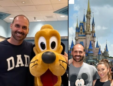 Eduardo Bolsonaro passeia com a família na Disney em mais um dia de sacrifício nos EUA. Créditos: Instagram / Heloisa Bolsonaro