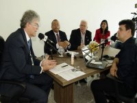A vice-governadora Lígia Feliciano, os secretários Luís Tôrres (Comunicação), João Azevedo (Infraestrutura, Recursos Hídricos, Meio Ambiente, Ciência e Tecnologia), Francilene Procópio (executiva da Ciência e Tecnologia), Cláudio Furtado, presidente da Fapesq; e Maria Eduarda Santos, superintendente da Rádio Tabajara, acompanharam o programa Fala Governador.