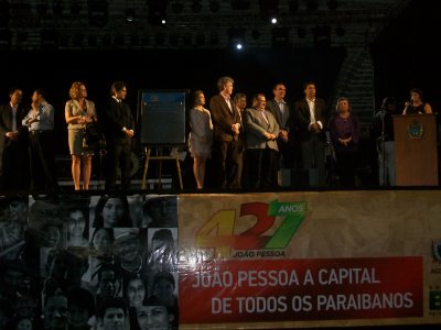 O governador Ricardo Coutinho (PSB) inaugurou, na noite deste domingo (26), o Salão de Feiras e Eventos do Centro de Convenções do Cabo Branco Poeta Ronaldo Cunha Lima. A presença de várias autoridades entre elas o senador Cássio Cunha Lima, o vice governador Rômulo Gouveia e os secretários ligados a cultura, turismo e infraestrutura também marcaram o evento. Segundo informações do superintendente da Suplan, Ricardo Barbosa, a inauguração do Teatro e do Centro de Congresso será no máximo até julho de 2013, sendo que a parte de concreto vai até dezembro e nos demais meses só a fase de acabamento.