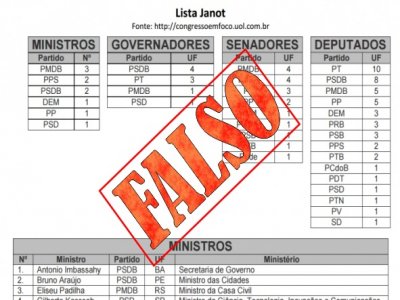 Circula pelas redes sociais uma relação com nome de políticos, divididos por cargos e partidos, atribuída ao portal Congresso em Foco como se fosse a nova “lista de Janot” Cuidado! Isso não é verdade. Confira aqui a real lista de Janot com os mais de 80 ministros, governadores, deputados federais e senadores mencionados no arquivo são aqueles que aparecem nos documentos apreendidos na casa de um dirigente da Odebrecht, onde três paraibanos são citados.