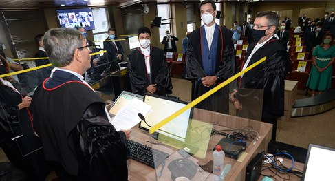 A cerimônia foi conduzida pelo desembargador Joás de Brito Pereira Filho, presidente do TRE-PB, e transmitida ao vivo pelo canal oficial do TRE-PB no YouTube.