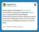 O presidente da Câmara Federal, deputado Hugo Motta, usou seu perfil numa rede social para felicitar a senadora Gleisi Hoffmann por sua nomeação para o cargo de ministra Ministra das Relações Institucionais no governo Lula.