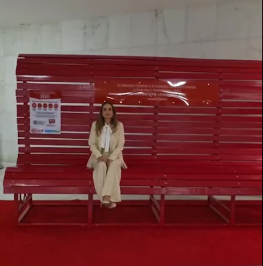 Em comemoração ao Agosto Lilás, a senadora Daniella Ribeiro (PP) compartilhou em suas redes sociais a instalação do Banco Vermelho na Chapelaria do Senado Federal. O projeto é um importante símbolo da luta contra o feminicídio e da conscientização sobre a violência contra a mulher.