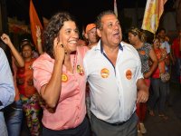 Apesar da ausência do governador, que não pode comparecer à caminhada por estar concedendo entrevistas em emissoras de TV anteriormente agendadas através de sorteio, Estela, Tavinho e centenas militantes da coligação A Força do Trabalho movimentaram o bairro, distribuindo material de campanha e conversando com a população.