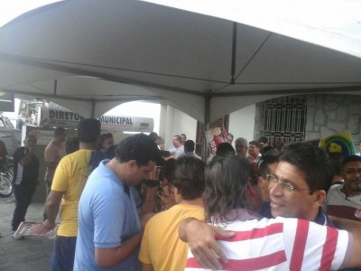 No local, peemedebistas e cassistas proferiam discursos árduos contra as lideranças do PMDB que aderiram ao PSB no segundo turno das eleições.