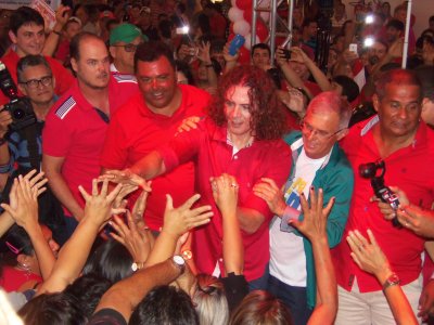 Veneziano chegou ao lado do canddato a vice Filipe Gaudêncio, do presidente estdual do PMDB, senador Jose Maranhão, e de diversas lideranças políticas da regiao. Centenas de pessoas vestidas de vermelho, cores do PMDB, acolheram o prefeitável. Candidatos a vereador na cidade dos partidos coligados PTN, PROS, Democratas tambem compareceram a convenção.