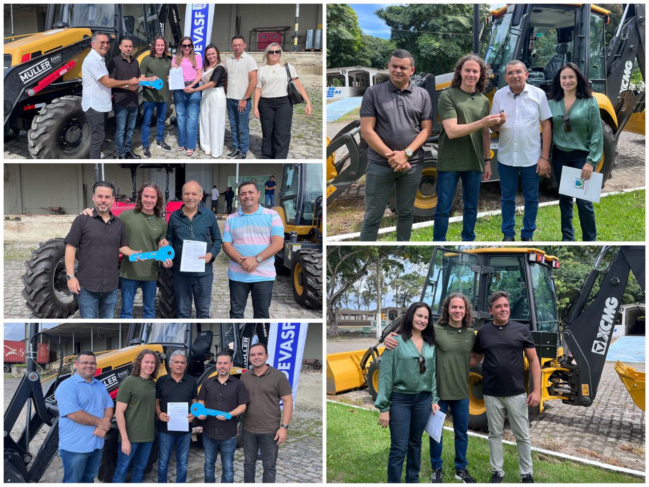 A prefeita de Cajazeirinhas Luana Pires, ao lado da sua vice Cida e vereadores, recebeu das mãos de Veneziano as chaves de uma retroescavadeira; o prefeito Milton, de Cacimbas, recebeu um trator; o prefeito Tião Pinto, de Frei Martinho, recebeu duas retroescavadeiras; o prefeito Helhinho Sousa, de Cuité de Mamanguape, recebeu uma retroescavadeira; o prefeito Tita de Biu Domingos, de Caturité, recebeu uma retroescavadeira; e o prefeito Neto de Coraci, de São José da Lagoa Tapada, recebeu uma retroescavadeira.