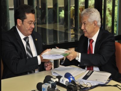O senador Vital do Rêgo (PMDB-PB) recebeu nesta quinta-feira (20) das mãos do deputado federal Arlindo Chinaglia (PT-SP) o relatório preliminar da proposta de Lei Oraçamentária Anual (LOA) de 2012.