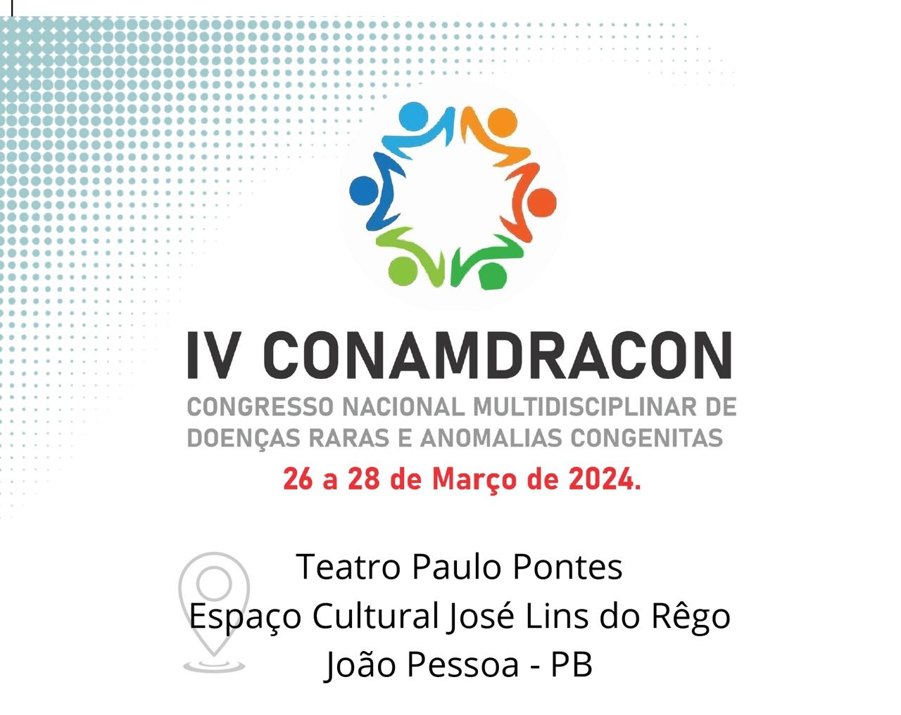 A Capital será a sede do IV CONAMDRACON, o Congresso Nacional Multidisciplinar de Doenças Raras e Anomalias Congênitas. O evento acontece entre os dias 26 e 28 de março, no Teatro Paulo Pontes, do Espaço Cultural José Lins do Rego, é uma realização da Associação Paraibana de Doenças Raras (Aspador) em parceria com a Prefeitura de João Pessoa e o Centro de Referência Multiprofissional em Doenças Raras.