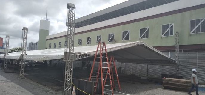 O Hospital Estadual de Emergência e Trauma Senador Humberto Lucena está montando uma estrutura de 400m², na área externa do complexo hospitalar, para comportar a área administrativa da instituição. Serão montadas em torno de 12 salas com entrada e saída independentes da unidade de saúde. O subsolo será destinado a criação de novos leitos para pacientes com Covid-19.