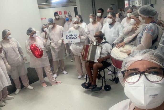 A forma de reconhecimento aos profissionais arrancou sorrisos e passos ritmados de quem estava presente. De acordo com a Secretaria de Saúde da Paraíba, seu José passou quatro dias de internação na enfermaria. Destes, três recebendo oxigênio.