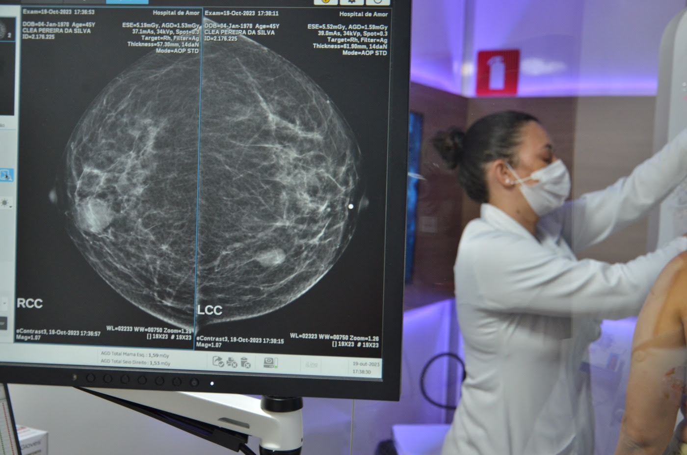 Realização de mamografias com a carreta de serviços do Hospital de Amor: