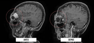 De acordo com o neurocirurgião responsável pelo procedimento, Breno Câmara, a técnica inovadora substitui a maneira convencional de retirada deste tipo de tumor, que é através de uma craniotomia, procedimento incisivo no couro cabeludo que pode trazer problemas funcionais e estéticos. “Utilizando o endoscópio de base de crânio, realizamos uma pequena incisão de menos de 3 centímetros na pálpebra superior da paciente o que possibilitou a visualização do campo cirúrgico através do endoscópio, e desse modo fizemos toda a remoção, com a garantia de trauma cirúrgico mínimo e com possibilidade de alta hospitalar em 48h”, destacou o especialista em tumores de base de crânio.