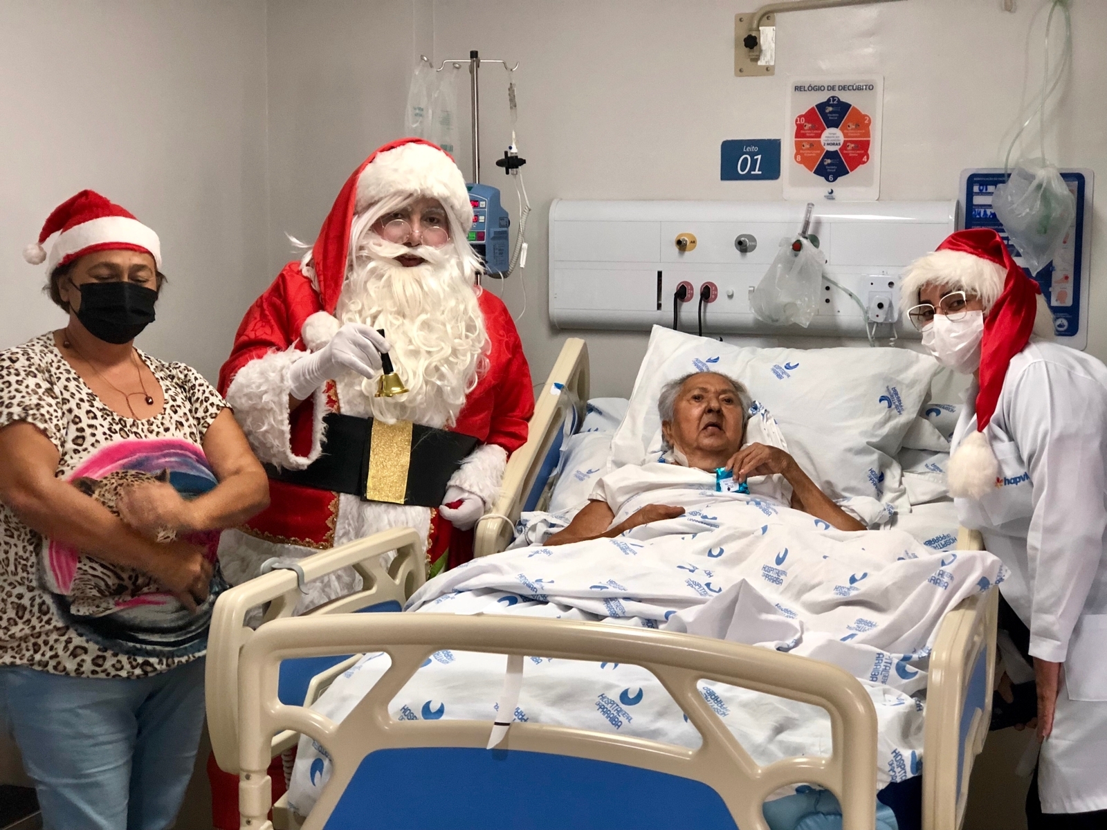 O velhinho foi em todos os setores: da UTI Neonatal até a enfermaria, lembrando aos pacientes da magia do Natal e da importância de se manter forte em uma situação, por mais difícil que seja. Para as crianças recém-nascidas, o papai noel entregou roupas temáticas, enquanto adultos receberam lembrancinhas ou chocolates com uma mensagem natalina.