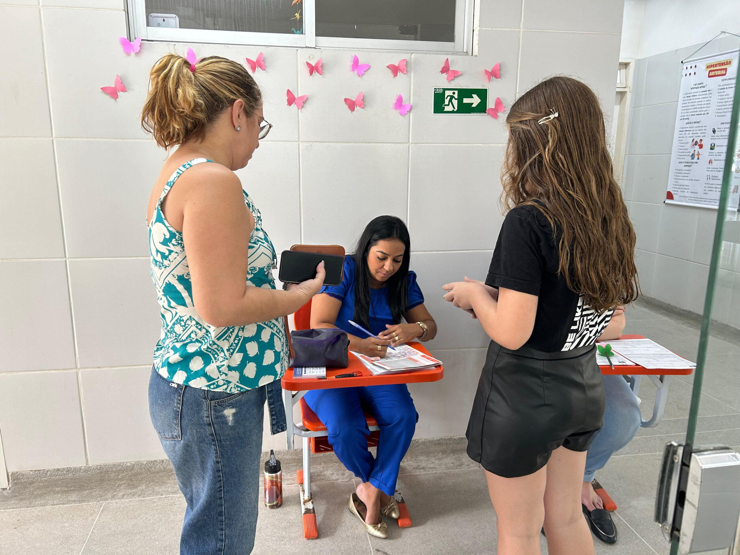 A enfermeira Jaqueline Bianca Cavalcanti aproveitou a ocasião para levar a filha Maria Clara, de 13 anos, até a unidade de saúde do Bessa para atualizar a caderneta de vacinação com a vacina meningocócica ACWY (conjugada), que protege adolescentes contra a meningite. “Eu acho muito importante a gente deixar a vacina em dia. E, por trabalhar na área da saúde, o cuidado é ainda maior. Ela já está com a (vacina) HPV em dia e hoje vim para ela receber a vacina ACWY e ficar imunizada”, disse a mãe enquanto a filha era vacinada.