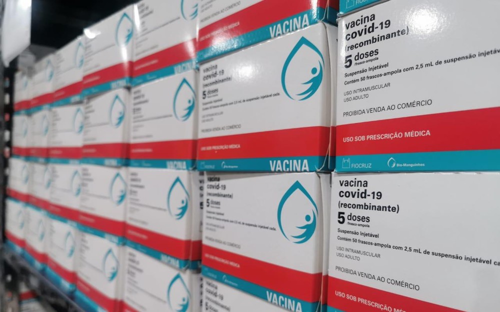 Também foram recebidas, 21,1 mil doses da vacina Astrazeneca/Fiocruz, que será entregue posteriormente. A vacina será usada na aplicação da segunda dose.