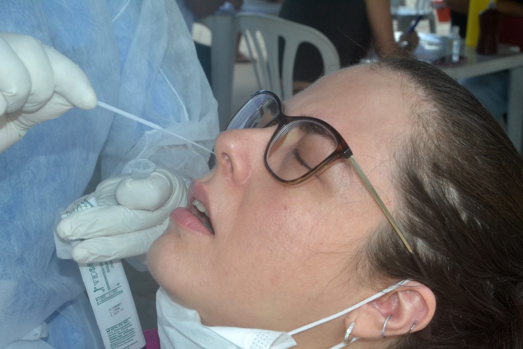 São utilizados os testes Rt PCR Antígeno e, para os casos positivos, são utilizados também os testes Rt PCR para fazer o sequenciamento viral. As pessoas que testam positivo recebem orientações médicas, inclusive sobre isolamento social, e encaminhamento para serviços de saúde.