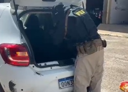 Durante abordagem a um veículo Renault/Sandero de cor branca, os policiais solicitaram a abertura do porta-malas para a verificação dos equipamentos obrigatórios. No momento da abertura, foi percebido um forte odor. Após uma busca minuciosa, os agentes encontraram 27 tabletes da substância ilícita escondidos no forro do compartimento de bagagens, totalizando 15 quilos de maconha.